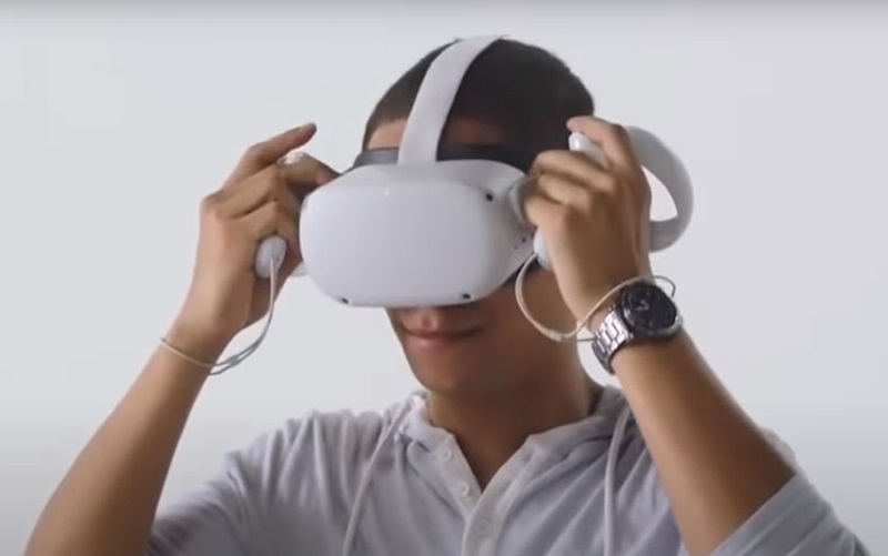 Wear the VR headset and adjust the straps.