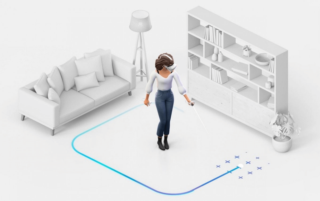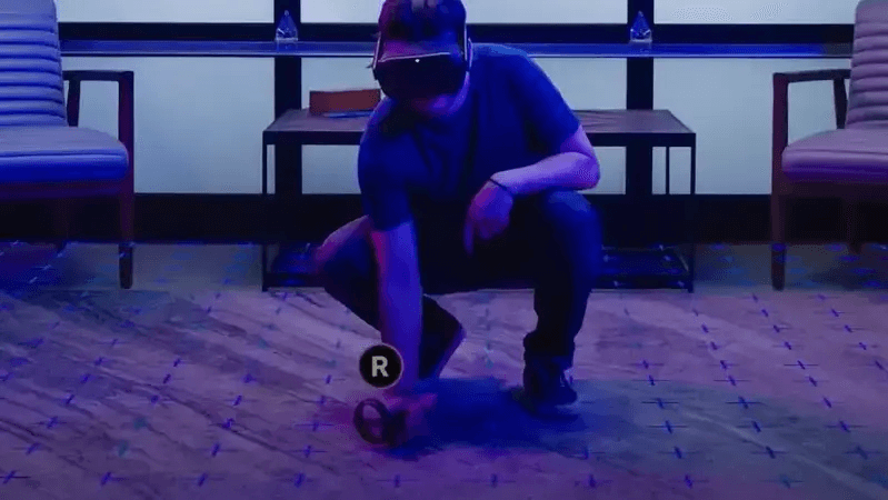 A pop-up will appear asking to adjust the floor level. Place one of the controllers on the floor as shown in the image & then click confirm.
