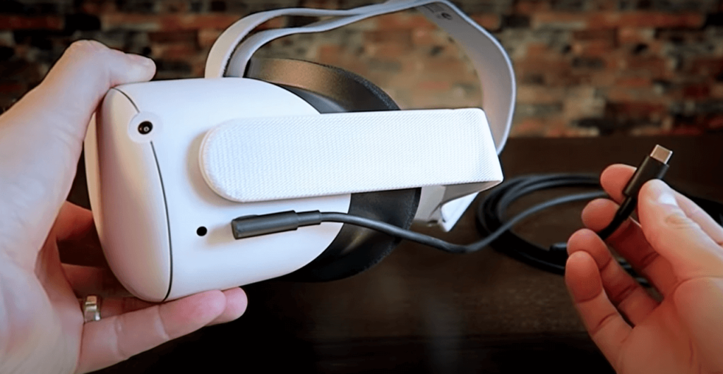 Connect the computer and VR headset with 16 feet long cable with USB to computer and ‘C’ port to VR headset.