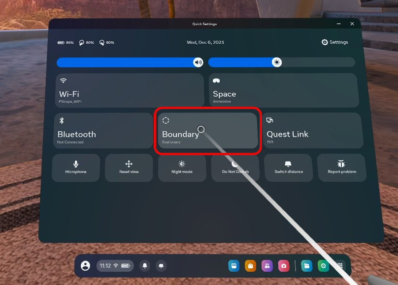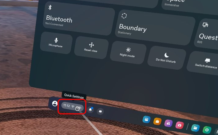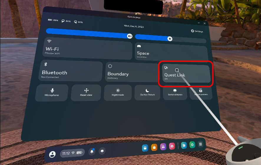 In the VR headset, a window will pop up asking permission to read the data. Select ‘allow to proceed’. Click the Quick Settings icon using the trigger and click the ‘Quest Link’ option.